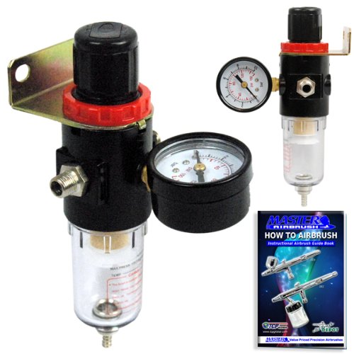 Get it Now! Airbrush Depot® Brand Airbrush Compressor AIR Regulator with Water-trap Filter, Now Included Is a (Free) How to Airbrush Training Book to Get You Started.