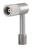 An anti-air-loss connector essential for air spring forks and shocks and the hard to reach valves on 12" and 14" wheels. The 90° tight-angle head fits into very tight spaces, and is Schrader valve compatible on both ends.